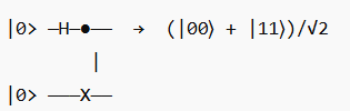 Let’s look at a 2-qubit circuit that generates an entangled Bell state: