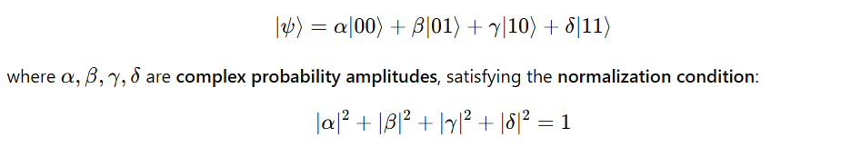 This means that a two-qubit system can represent all four states simultaneously, until measured.