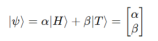 This state vector expresses the probability of being in Head or Tail state — analogous to being in 0 or 1 state in a qubit.