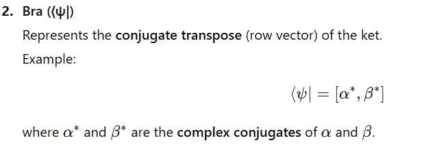 1. Ket (|ψ⟩) : Represents a column vector — the quantum state itself.